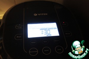 Выбираем программу Тушить - 1:30 минут. Через 30 минут я мясо перевернула, чтобы оно стало золотистое со всех сторон и оставила еще на 30 минут. Для моего кусочка мяса хватило 1 часа.