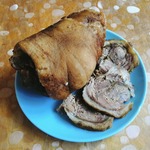 в след раз положу побольше кожуры луковой, чеснока и соли, мы любим погорячее) рульку брала заднюю, после отделения кости мяса осталось на 1.4 кг, еле залезла в мультиварку. 2,5 часа в режиме тушение, остывала на столе, затем ночь в холодильнике.