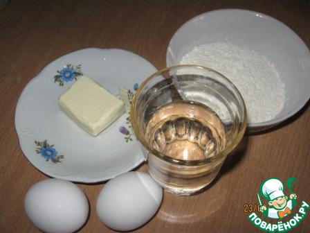 Приступаем к приготовлению заварного теста. Для этого нам понадобится такой набор продуктов.