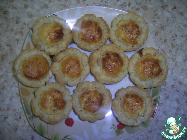 Выложить начинку на тесто, примерно на 2/3 высоты формочек, так как начинка немного поднимется во время выпечки. -