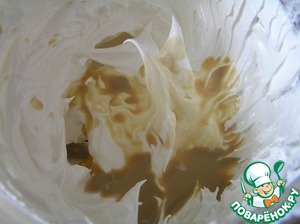 Белки взбить до мягких волн. Постепенно добавлять мелкий коричневый сахар и лимонный сок, продолжая взбивать.