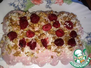 Сверху посыпаем кокосовой стружкой и ставим пропитываться в холодильник на 4-5 часов - всё зависит от чёрствости печенья;