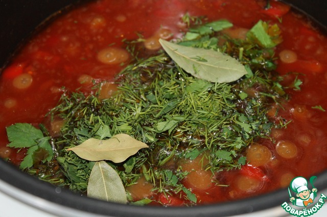 За 30 минут до завершения программы добавить рубленую зелень и лавровый лист