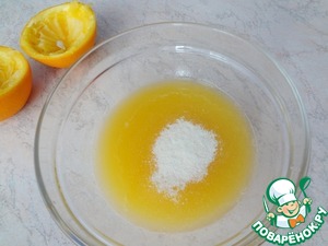 Из апельсина выжать сок, нам понадобится 100 мл. Мне хватило одного апельсина.