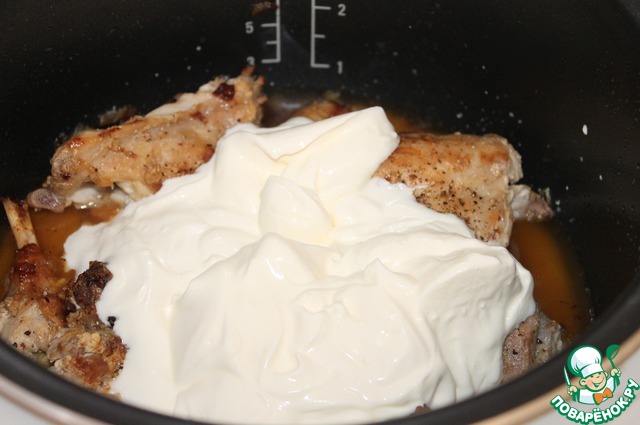 • Через 20 минут открыла крышку, добавила сметану, соль, перец и продолжила тушение