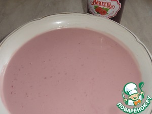 7)Смешиваем сметану с йогуртом, добавляем джем малиновый "Махеевъ", выливаем в эту массу распущенный на водяной бане желатин.