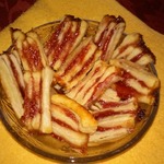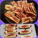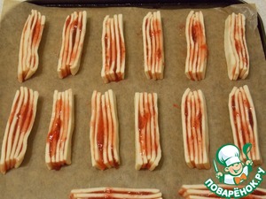 Теперь нарезаем на полоски примерно 0,5 см. Укладываем на застеленный бумагой противень.
