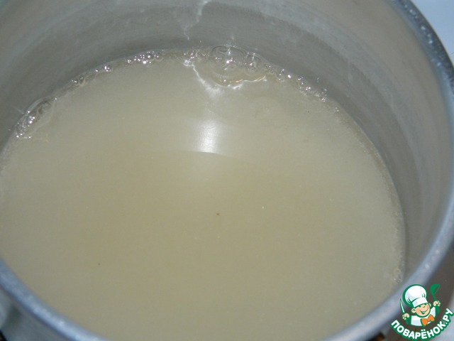 Начинаем взбивать белки с щепоткой соли и ставим на плиту воду с сахаром. Доводим до кипения и варим несколько минут до легкого загустения.