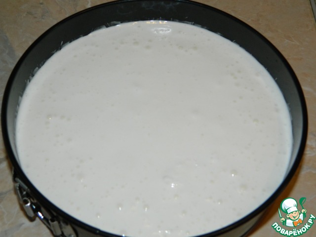 Выливаем в разъемную форму и ставим в духовку при 180 С на 5-7 минут.