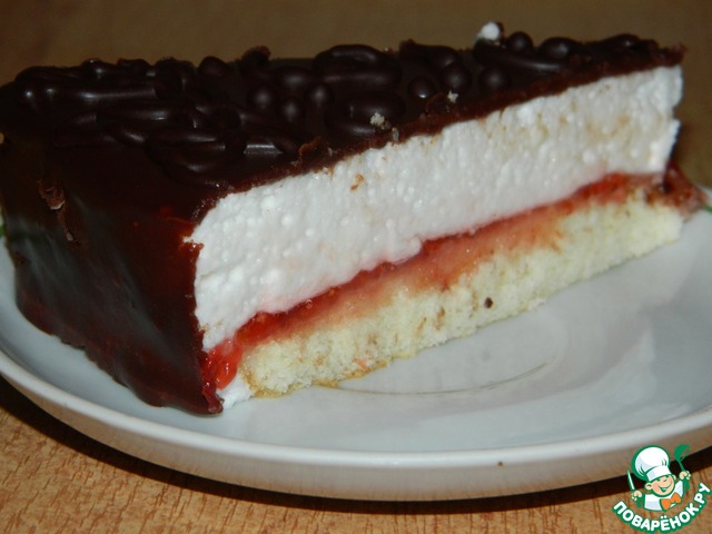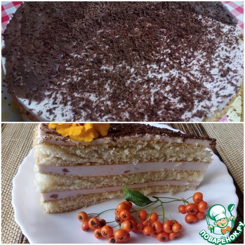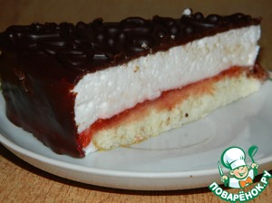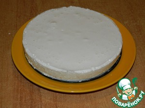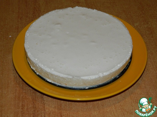 Готовое суфле выливаем на смазанный джемом корж. Ставим в холодильник на пару часов для застывания.