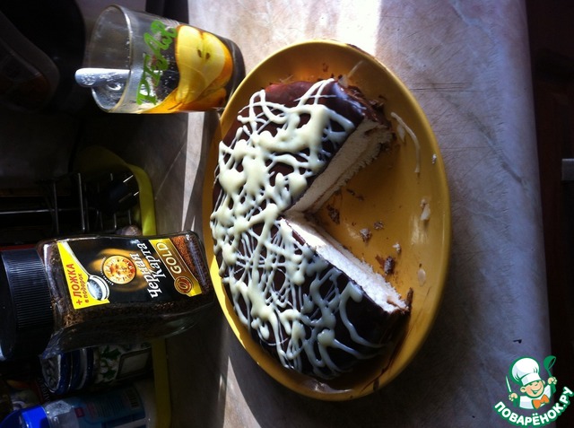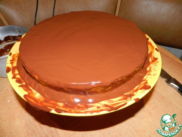 Аккуратно снимаем его с дна формы и перекладываем на чистую тарелку (торт очень гибкий). Убираем в холодильник. После застывания глазури торт можно дополнительно украсить по своему вкусу, а можно оставить и просто шоколадным.