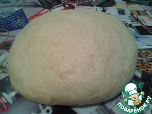 Подготовить противень: смазать дно и бортики обильно растительным маслом. Тесто разрезать на 6 частей. На посыпанном мукой столе раскатать 1 часть достаточно тонко, намотать на скалку, перенести на противень.