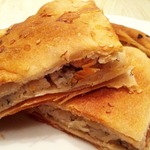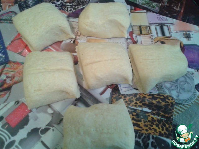 Раскатать 3 оставшихся куска теста, уложить, прикрывая начинку и бортики, смазать маслом. Тесто с бортиков закрутить внутрь.
