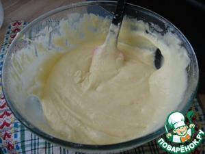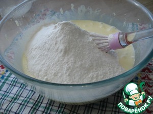 Добавить муку, смешанную с разрыхлителем.