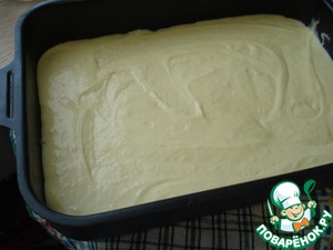 На большой противень выложить тесто. Поставить в разогретую до 180 градусов духовку, выпекать до полуготовности, примерно, 15-20 минут, пока немного не зарумянится сверху.