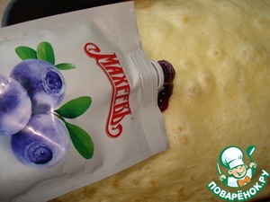 Достаньте пирог из духовки, сразу же смажьте черничным джемом.