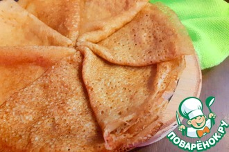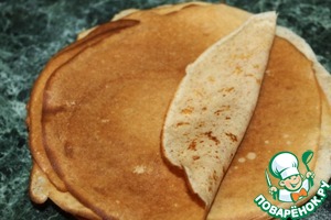 Выпекаем тоненькие блинчики, на разогретой сковороде, смазав растительным маслом только перед первым блинчиком.