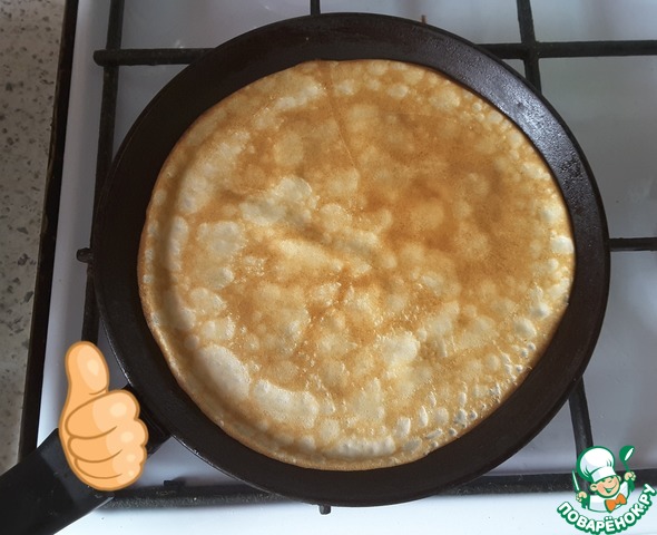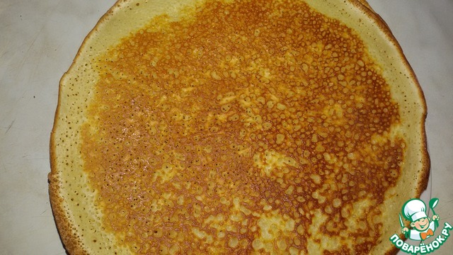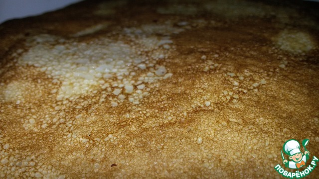 Сковороду смазать совсем небольшим количеством растительного масла, раскалить и выпекать блинчики сначала с одной стороны до золотистого цвета.