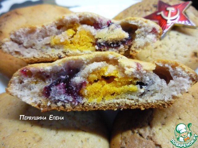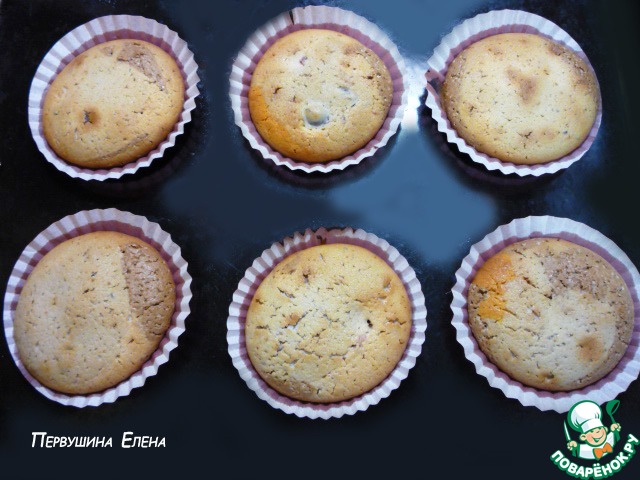 потом смородиновое, и так далее до конца, оставив 1 см. свободного места сверху (т. к. тесто поднимется). Отправляем в разогретую до 170 С духовку на 15-20 минут.