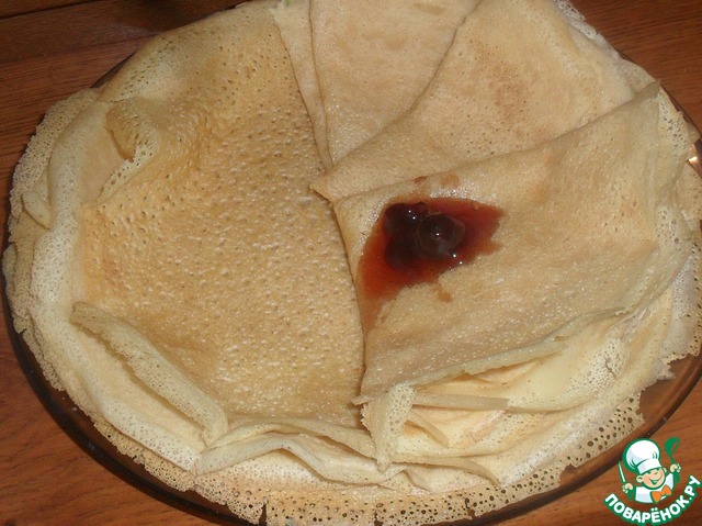 А вот наши блинчики, уже готовые к употреблению!) Очень вкусные и красивые! Уже хотела проститься с вами до следующего рецепта) Но вспомнила! Ведь я обещала рассказать вам, как тогда оценил мои блинцы мой любимый супруг!)