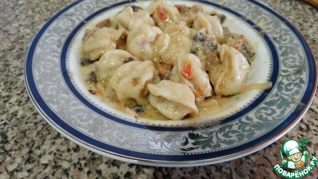 Да-да, рагу из пельменей :) Самый замечательный выход для женщин, у которых в холодильнике лежат из быстрого только пельмени, а голодный мужчина уже на подходе. Делается на раз-два, вкусно до безумия, нестандартно и, в целом, очень уютно. Так что, запомните этот рецепт как такую своеобразную палочку-выручалочку, меня уже несколько раз он спасал.
