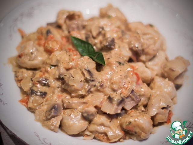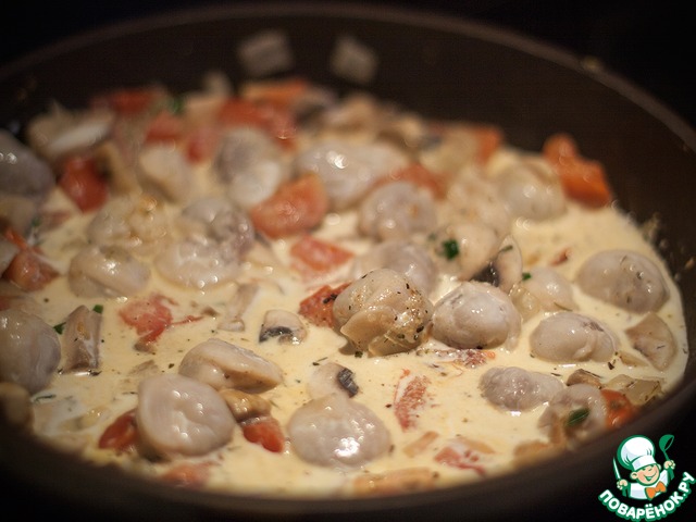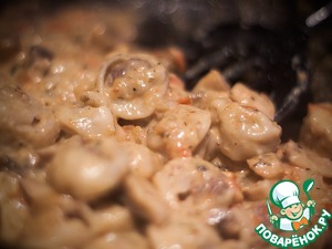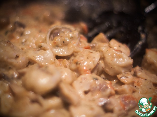 Сливки должны более-менее выпариться, до состояния, как на картинке.