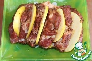 Рецепт «Свиная шейка, запеченая с айвой и мятой»: