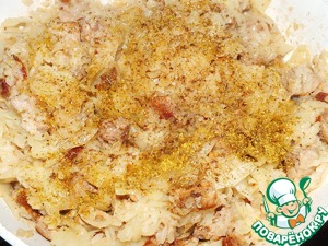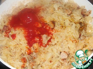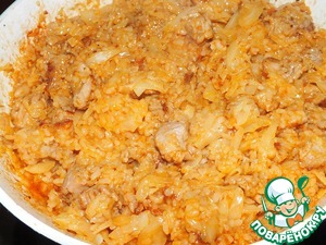 Тушить до готовности риса и капусты, подливая понемногу воду