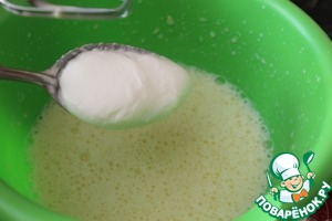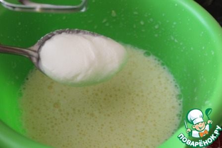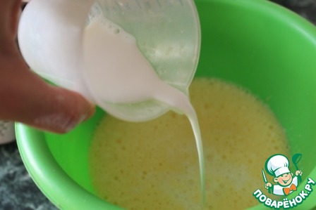 К яичной смеси добавляем молоко (комнатной температуры), взбиваем.