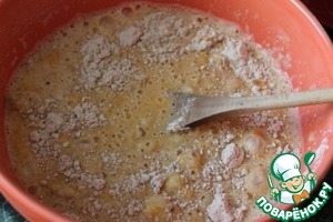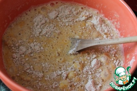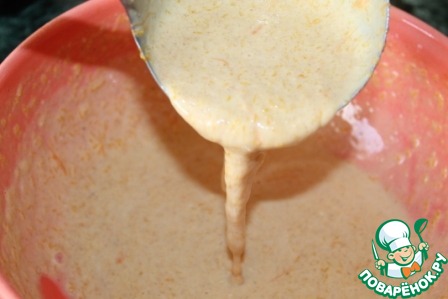 Осторожно вводим тыквенно-молочную смесь в мучную, всё хорошо перемешать.