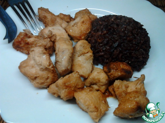 Нагревать, постоянно помешивая. Довести до кипения и проварить в течение минуты. Готовый соус добавить к курице и хорошо перемешать. -