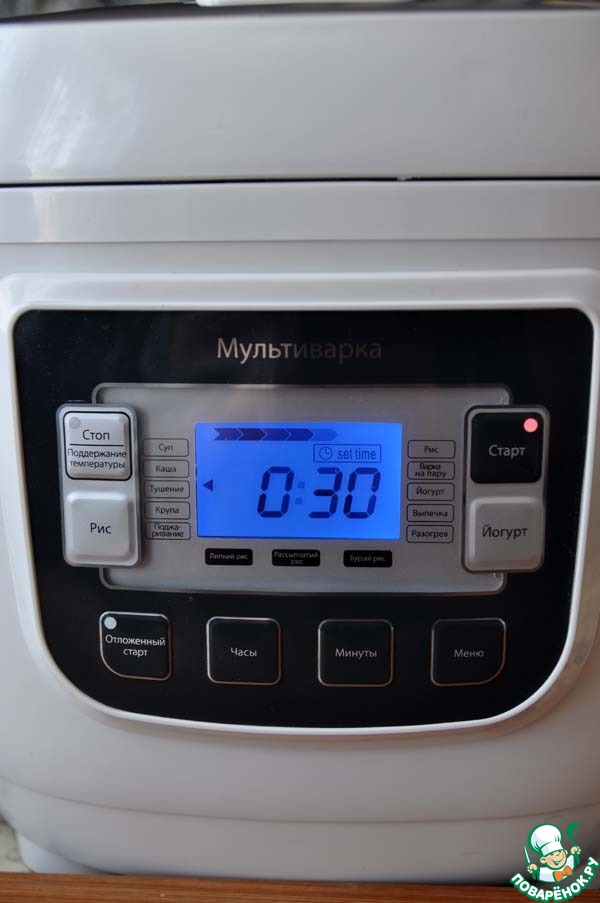 Ставим меню на режим "Тушение" на 30 минут. Крышку закрываем.