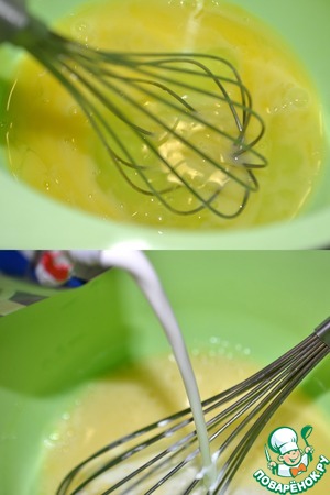 Взбиваем яйца венчиком, добавляем сливки и хорошо перемешиваем.