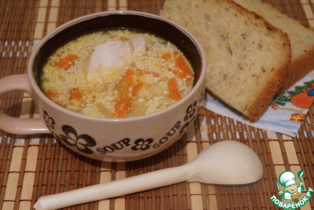 В чашку МВ наливаем воду, опускаем грудки. Добавляем соль, перец, мускатный орех и лавровый лист. Выбираем режим "Суп".