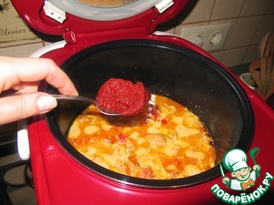 Добавить 1 столовую ложку томатной пасты (не кислой!!!). Продолжить тушение.