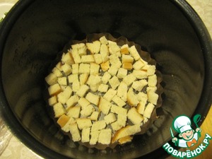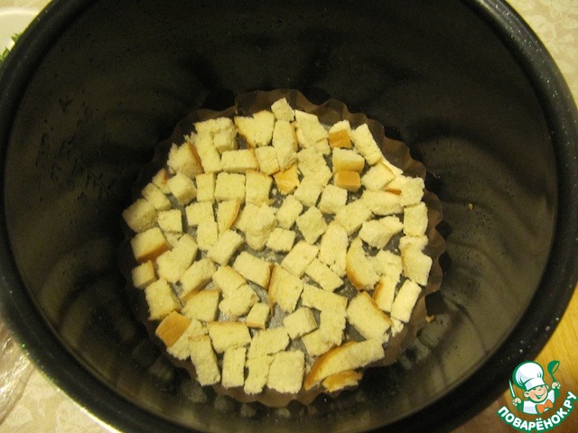 Выложить дно и бока чаши подготовленными сухарями.