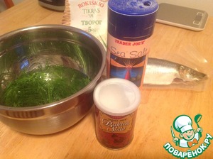 Сразу хочу сказать, что пропорции в начинке можно менять по своему усмотрению. Например, взять побольше сельди и поменьше творога или наоборот. Я сегодня взяла поровну сельди и творога и небольшой пучок укропа, граммов 50.