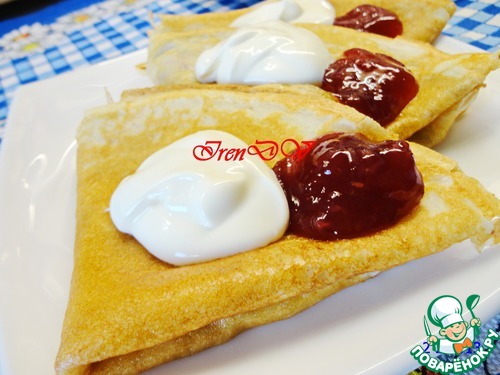 Нагреваем блинную сковороду на среднем огне и выпекаем блинчики.