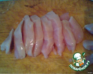 Нам необходимо вырезать филе и порезать его ломтиками шириной около 1см