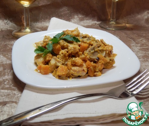 Рецепт «Курица с тыквой и шампиньонами в мультиварке»: