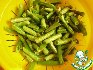 ... стручковую фасоль (если она у вас свежая - нарежьте ее кусочками 5 см, если мороженая - разморозьте)...