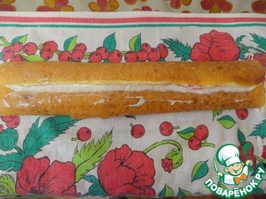 Затем свернуть в рулет при помощи полотенца. Завернуть в пищевую пленку и убрать в холодильник на 2 часа.