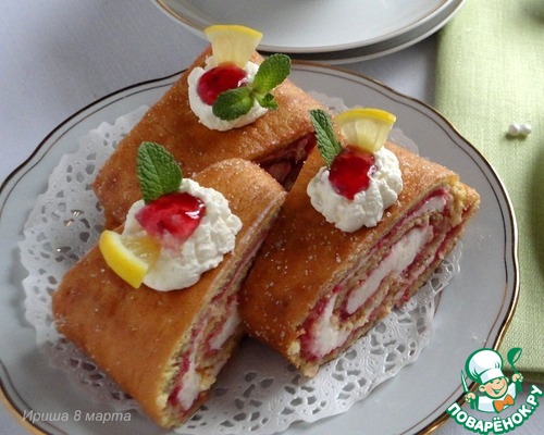 Иногда рулет может быть уместнее, чем пышный торт. Нежный, лёгкий воздушный, с оригинальной начинкой, порадует вас и ваших гостей. Пробуйте и удивляйтесь.