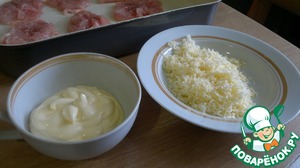 Чайной ложкой поверх сыра выложить майонез, поверхность разровнять.