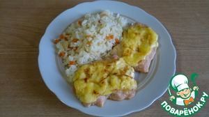 P.S. Можно было, конечно, до сыра на курицу положить половинку кольца ананаса консервированного или пассерованные морковь с луком. Это на любителя!