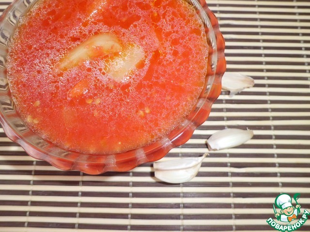 Помидоры пропустить через мясорубку, прокипятить 5 -7 минут, добавить сахар, соль, растительное масло и уксус, дать закипеть и вылить это все в перец. Дать прокипеть еще 5 -7 минут, но не больше 10 (если не закипает), иначе переварится и все перцы будут мягкими. А так они остаются хрустящими.