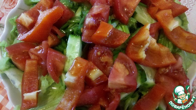 Вкусный легкий салат. Прост в приготовлении, не займет много времени и не скажется на фигуре)))