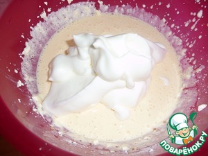 Белки взбить в крепкую пену (взбивать один белок, затем добавлять по одному), добавить в крем.