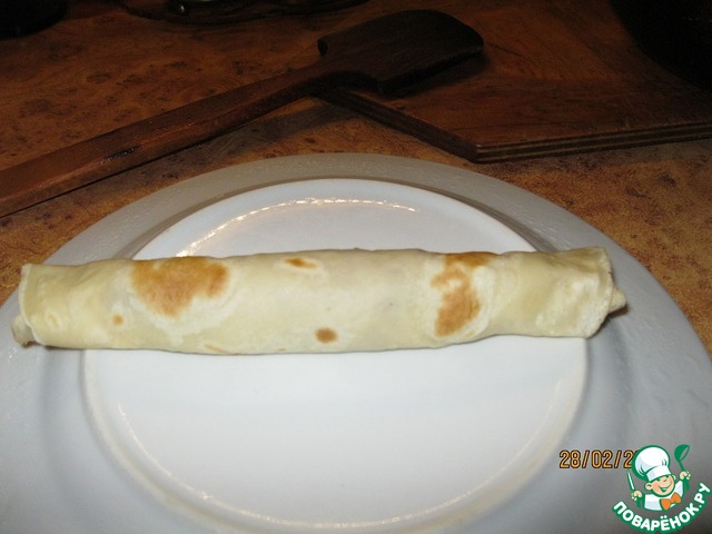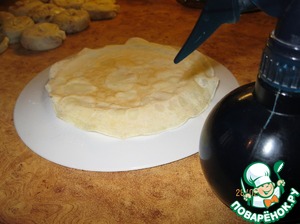 Для того, чтобы края блинов не сохли и легко скручивались, я их сбрызгивала пульверизатором