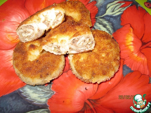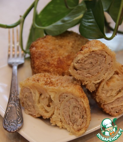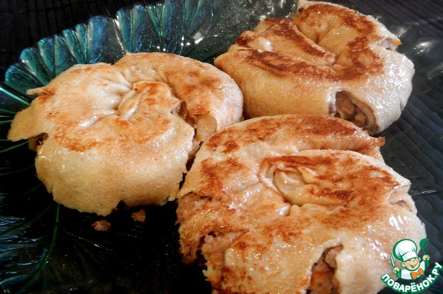 Рецепт «Пирожки "Улитки" с мясом в блинном тесте»: